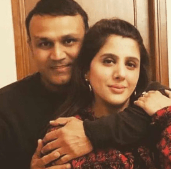 Virender Sehwag (विरेंद्र सेहवाग) आणि Aarti Ahlawat (आरती अहलावत) यांचा संबंध १९८० च्या दशकात सुरू झाला, जेव्हा ते कौटुंबिक कनेक्शन्सद्वारे भेटले. Sehwag च्या चुलत भावाचे लग्न Aarti च्या मावशीशी झाले होते, आणि लहानपणीच ते मित्र झाले. त्यांच्या वयाच्या २१ व्या वर्षी Sehwag ने Aarti ला प्रपोज केले. पाच वर्षे डेट केल्यानंतर, या जोडप्याने २२ एप्रिल २००४ रोजी लग्न केले, जे माजी वित्तमंत्री अरुण जेटली यांच्या निवासस्थानी मोठ्या थाटामाटात पार पडले.
